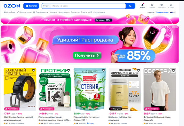 - Цены/акции: «Sale до 20%», «Welcome-оффер» на баннерах.