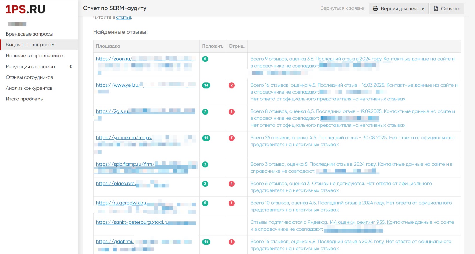 Повысить рейтинг компании на площадках; увеличить количество позитивных отзывов в выдаче и снизить процент негатива.