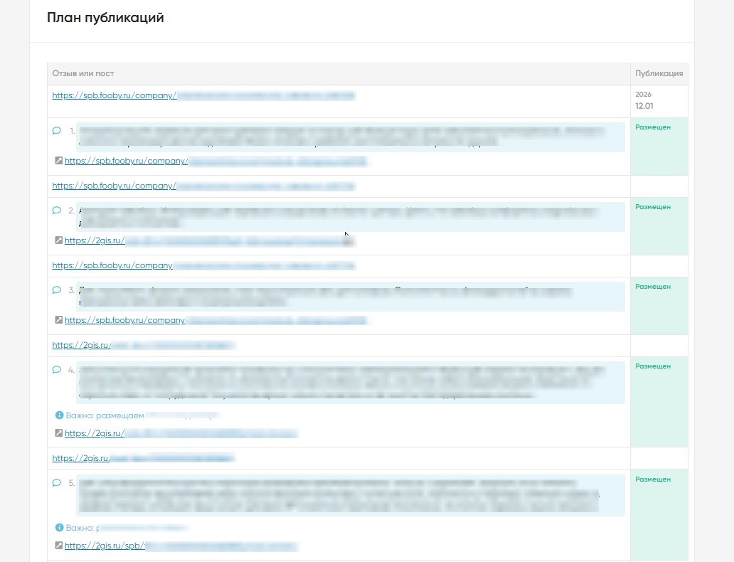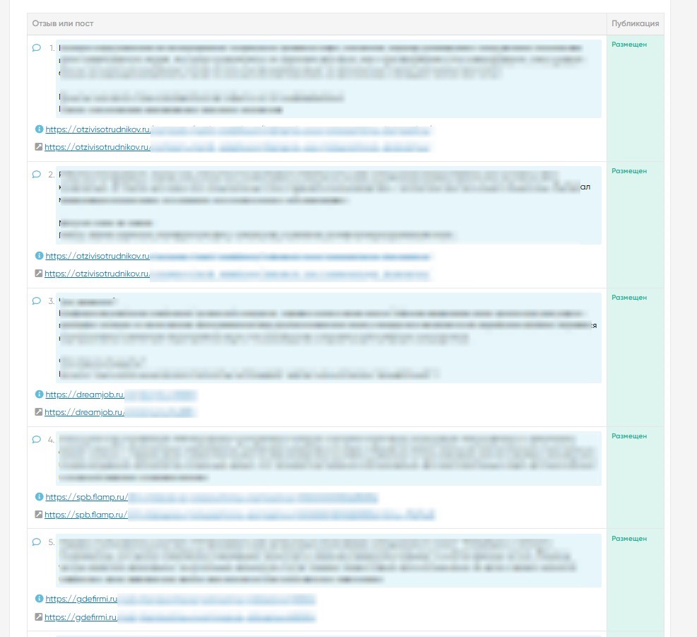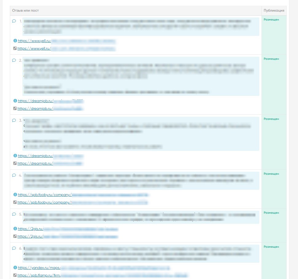 Разместили 20 отзывов о компании. Немного вышли за рамки 3 месяцев сопровождения, чтобы отзывы выглядели естественнее и не вызывали подозрения ни у поисковиков, ни у клиентов.
