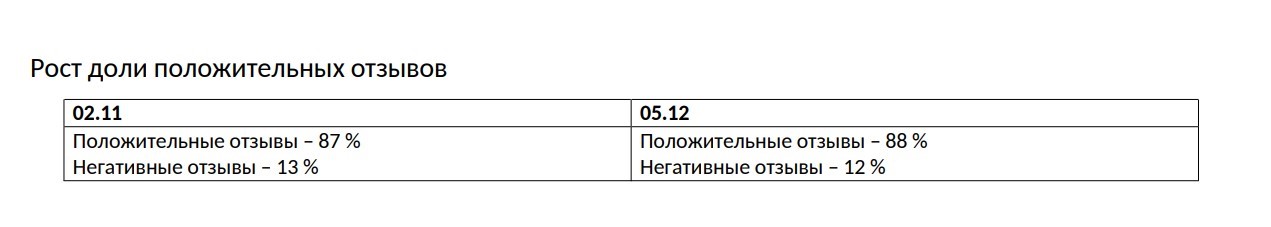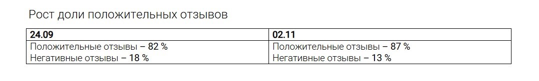 Рост доли положительных отзывов в выдаче и сокращение негатива: