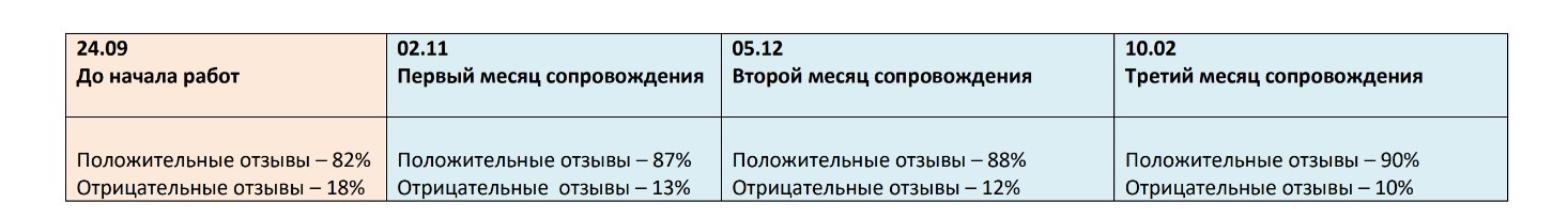 Репутация у компании в целом была положительной, но отзывы клиенты писали редко. Важно было поддержать имидж и побудить заказчиков оставлять больше положительных откликов, а также регулярно и оперативно отвечать на отзывы — негативные, нейтральные и положительные.