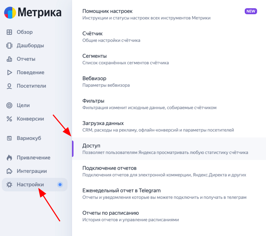Перейдите в "Настройки", далее в раздел "Доступ":